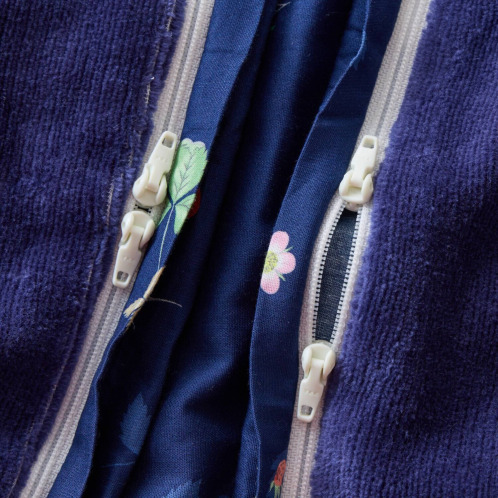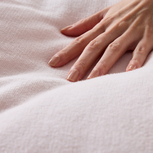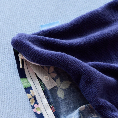 肌面にパイル部分綿100%のコットンファー生地を、表面に綿100%ブロード生地を使用した、毛布とカバーが一体となった構造で、ズレを防ぎ暖かくお休みいただけます。