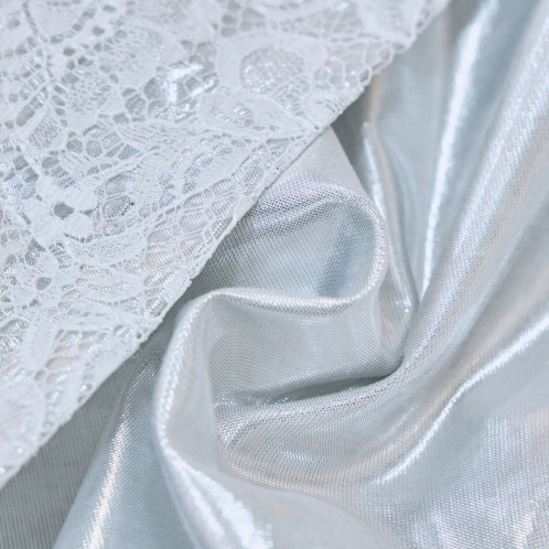 当メーカー独自開発の加工技術により、アルミ蒸着フィルムを経糸に使用した織物生地を裏地にして、アルミの効果を持ちつつ、デザイン性の高いファブリック生地を完成させました。