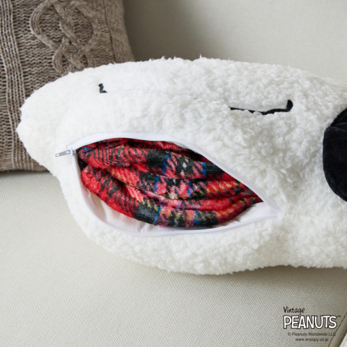 専用のクッションケースに入れることで、かわいいスヌーピークッションに変身する優れもの!ブランケットは便利なサイズ感で、リラックスタイムや、お仕事中、また車内でのひざ掛けとして重宝しそう。