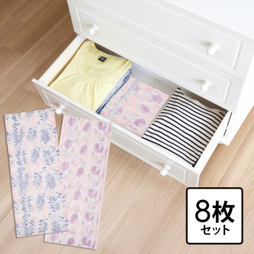 引き出しや衣装ケースのほか、布団や枕の下、ふとん圧縮袋、流し台や洗面台の下、食器棚、下駄箱やくつ箱など、さまざまな場所で使用できます。