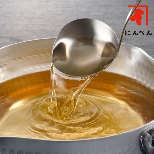 本枯れ鰹節、鯖荒節、真昆布、乾燥しいたけ、本醸造特級醤油を使用した贅沢な仕様で、手間ひまがかかる抽出方法で、それぞれの素材の旨みを活かす製法で作りました。