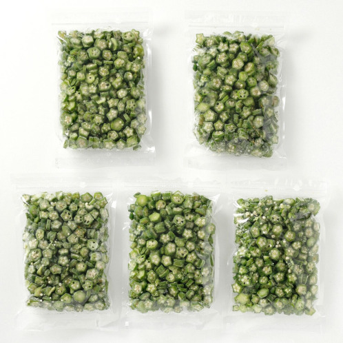 旬の時期に採れたオクラを、ヘタなどの部分や先端は除いて可食部のみをカットし、鮮度を落とさずにバラ凍結にしているため、捨てるところがありません。