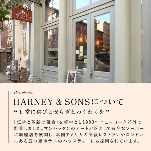 マンハッタンのアート地区として有名なソーホーに旗鑑店を展開し、本国アメリカの高級レストランやロンドンにある五つ星ホテルのハウスティーにも採用されています。