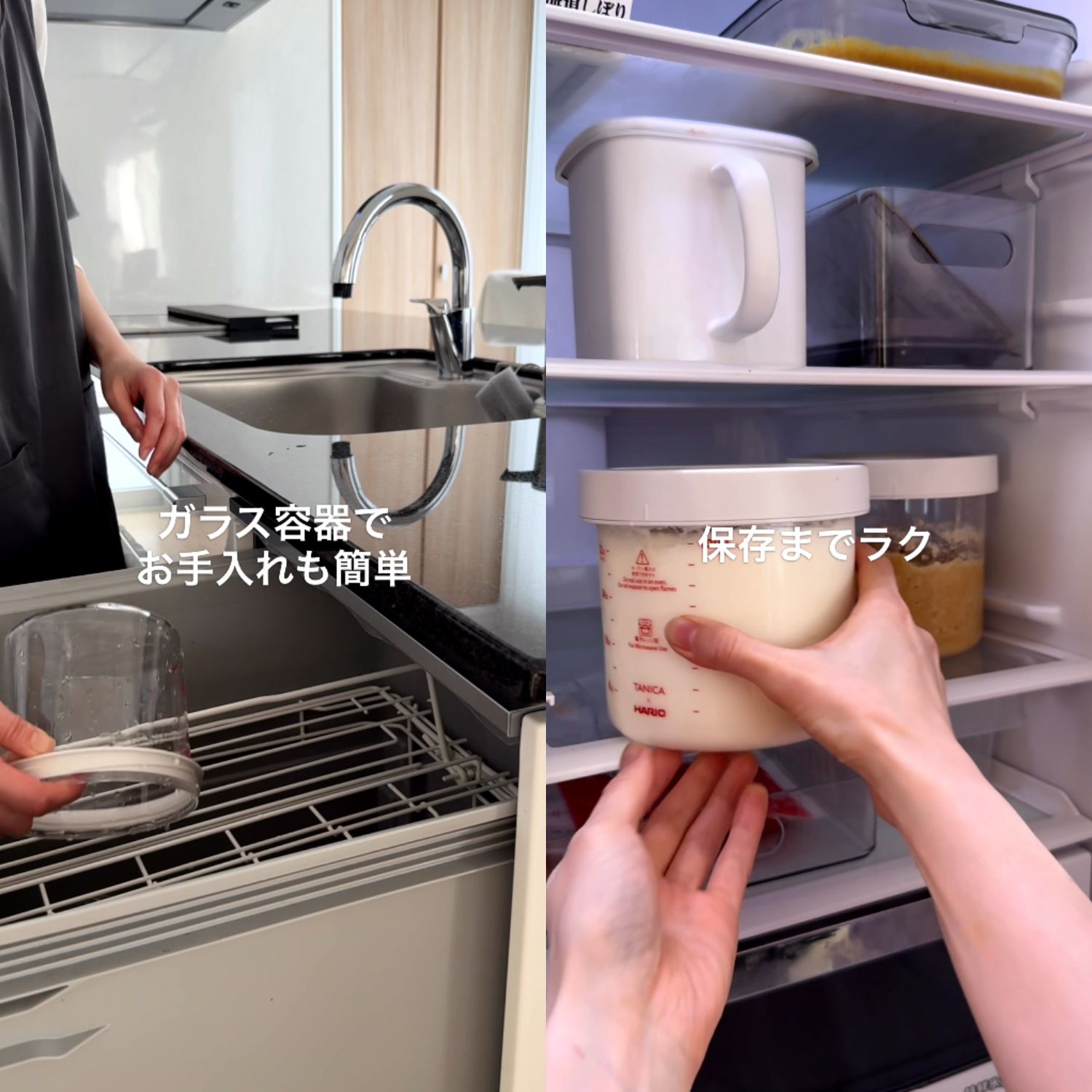 HARIO製の耐熱ガラス容器は、においや傷がつきにくく、電子レンジや食器洗い乾燥機にも対応。