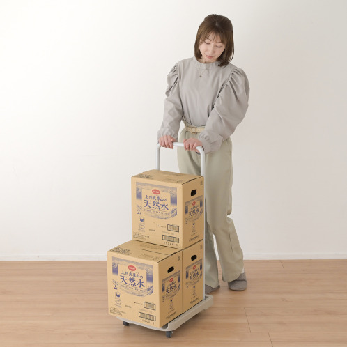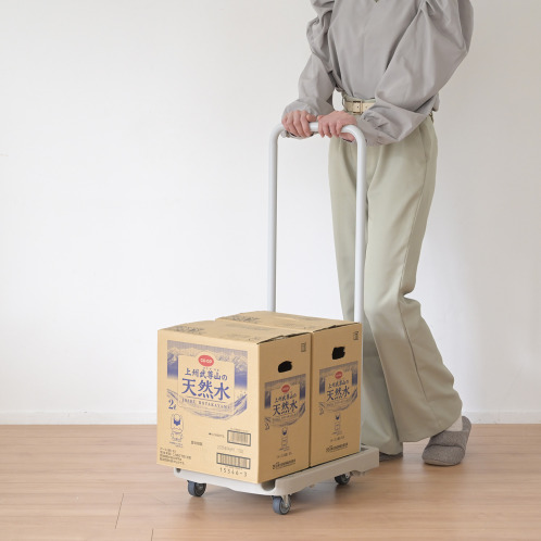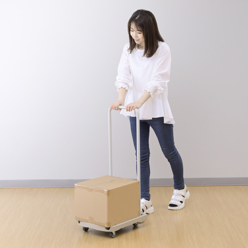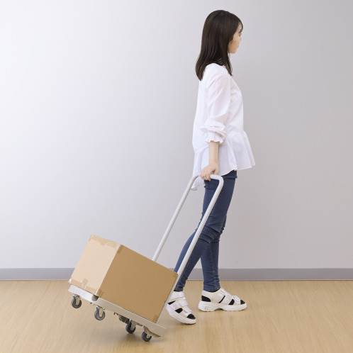 キャリー機能により、台車をキャリーケースのように引いて使えるので、力のない方でも楽に持ち運びができます。