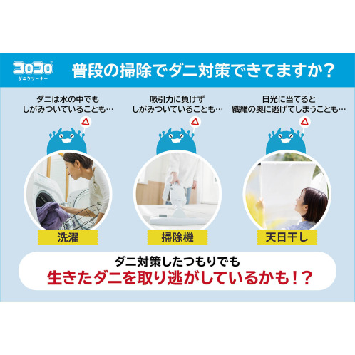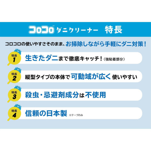コロコロの使いやすさはそのままに、お掃除しながら手軽にダニ対策ができる商品。