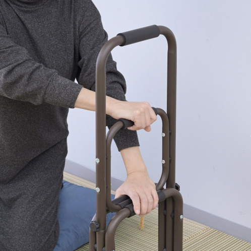 上・中・下3本の取っ手仕様で、床や椅子・ベッドなど、さまざまな高さから立ち上がる機会の多い日常シーンで活躍する商品です。