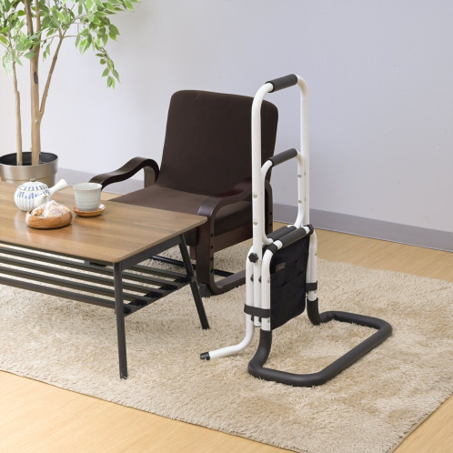 立ち上がりをサポート& 簡易手すりにもなる ポケット付 らくらく立ち上がり取っ手 ホワイト
