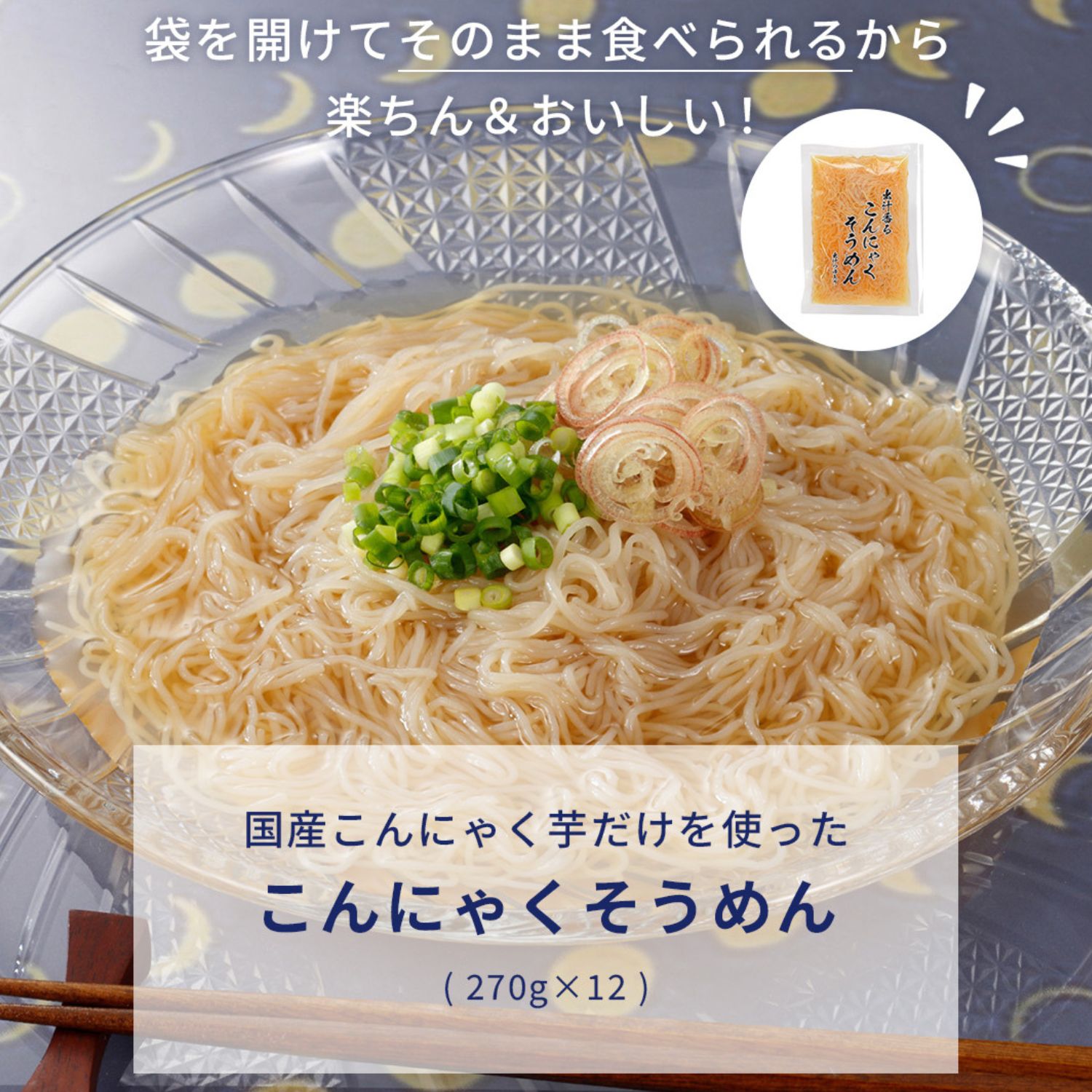 袋を開けてすぐ、水で洗い流さずにそのままお召し上がりいただける「こんにゃくそうめん」のご紹介です。