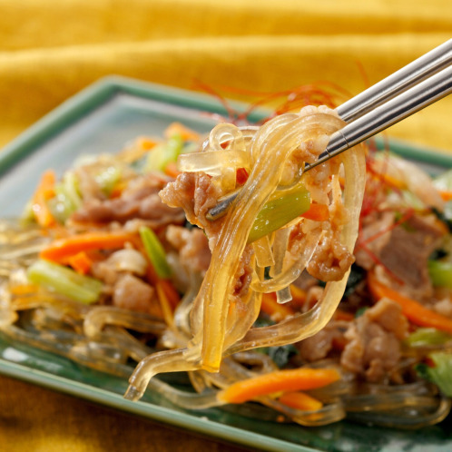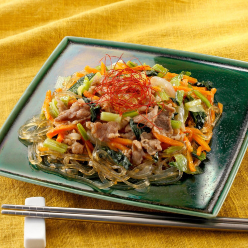 <牛カルビ入り具だくさん!もちもちチャプチェ>