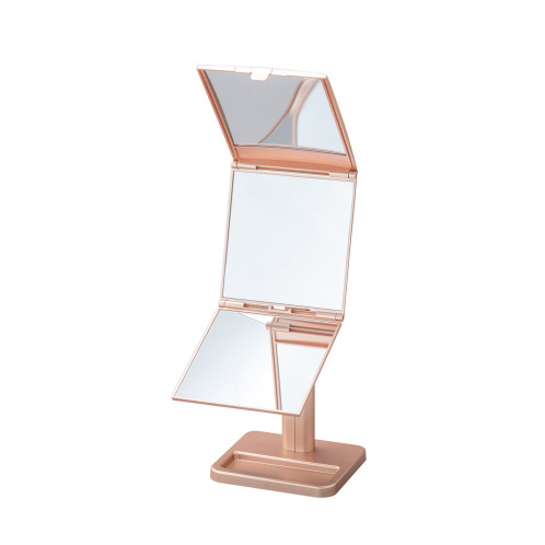 ホリウチミラーの自信作! 様々な角度から 自分を確認でき 2倍拡大鏡もついた三面鏡 ナピュア スタイリング スタンドミラー ピンクゴールド