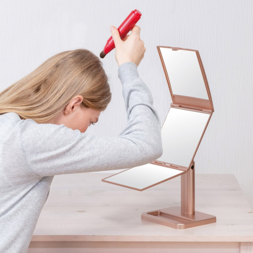 回転させてタテ型にするとアイメイクや付けまつ毛をつける時に、リタッチ・カラーリングや白髪染め、ウィッグの装着時、頭頂部や後頭部付近をチェックする際はフリーハンドになり便利です。