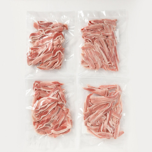 かぶり肉の食感や味わいを一番おいしくお召し上がりいただきながら、さまざまな料理にお使いいただけるよう約3mmの厚さにスライスして、チャック袋にバラ凍結してお届け。