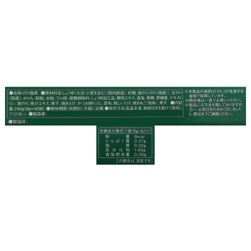 ■コンタミネーション注意喚起表示:本製品の海苔は「かに」の生息する海域で採取しています。