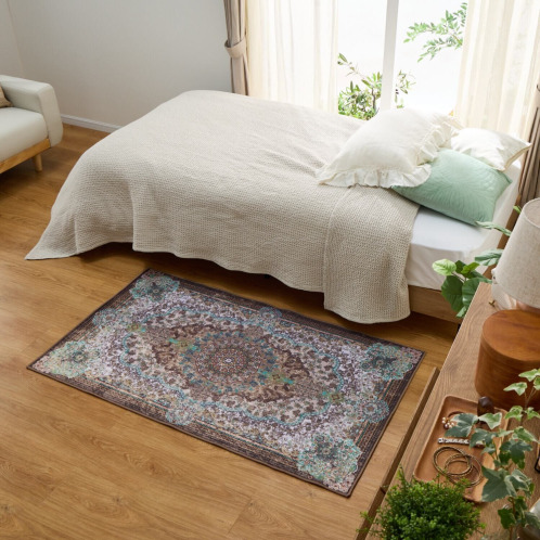 洗えて畳める はっ水加工 ペルシャンデザイン シルクタッチカーペット <80×140cm>
