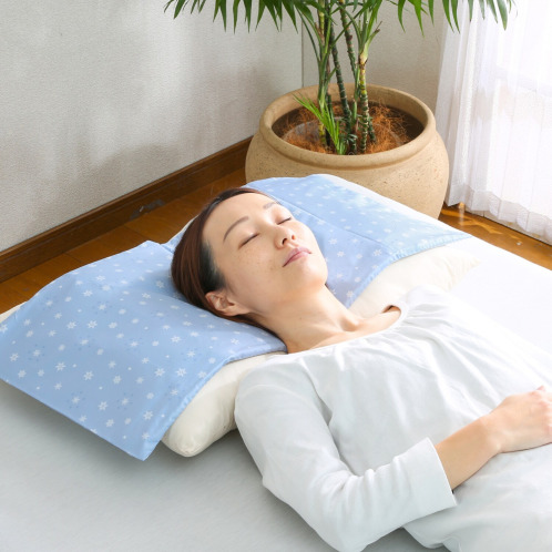 冷凍庫で凍らせずに使える冷感マット「室蘭ひゃっこいマット」を、冷感素材のカバー付きでご紹介します。