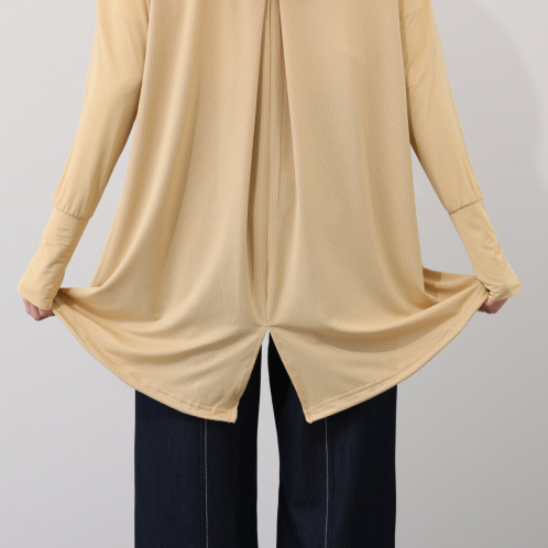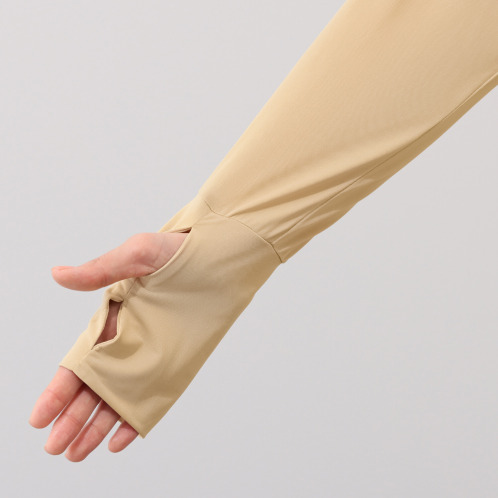 油断しがちな手の甲の日焼けを防ぐために、袖丈が2段階に調節できる指孔付き。
