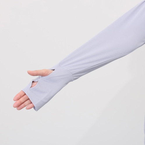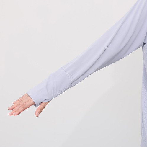 油断しがちな手の甲の日焼けを防ぐために、袖丈が2段階に調節できる指孔付き。