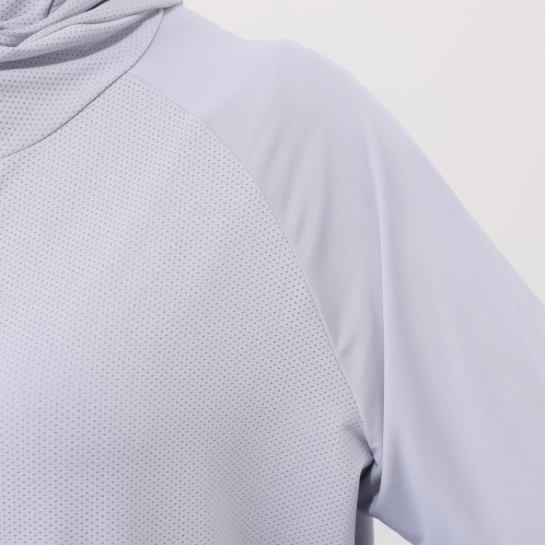 着心地の軽やかなメッシュ生地と伸縮性に優れたスムース生地を袖や身頃の部位別に使い分けしており、生地全面接触冷感機能を持っています。