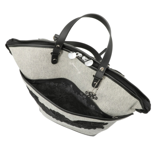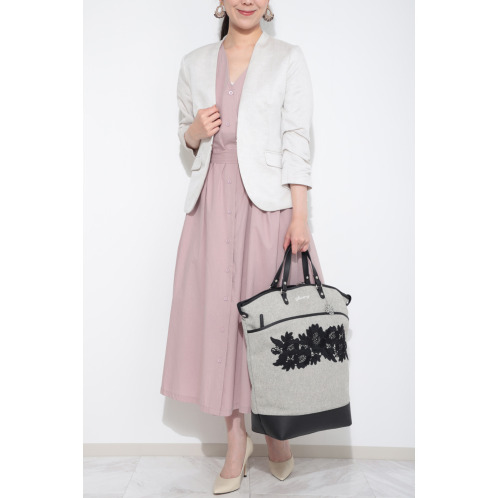 外装は綿・ポリエステル混紡生地を使用し、天然素材の風合いとレースが引き立つデザイン。