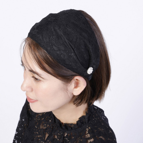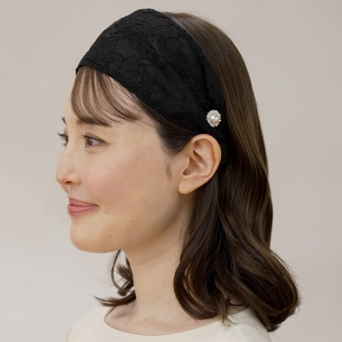 メイドバイスターズ 幅チェンジできて 髪・頭皮のお悩み 瞬間おしゃれカバー! アレンジ多彩の ワイドカバーカチューシャ ブラックレース