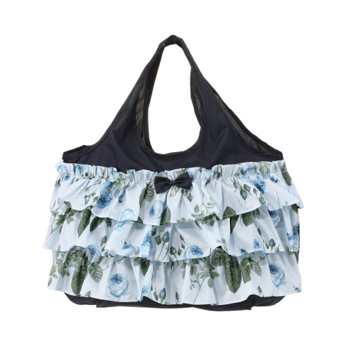 ラ ルイス ルドゥーテ ブルーローズ柄 フリルエコバッグ& 3段フリルエコバッグ 2点セット ブルーグレー