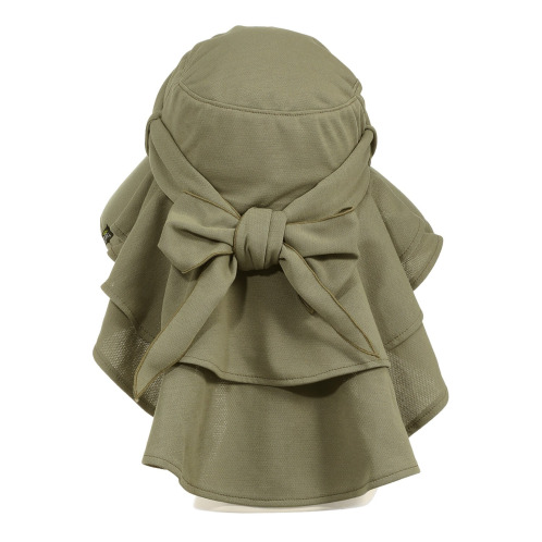 風が強い日も安心な取り外しできるあご紐やサイズ調節ができるスカーフリボンも付いています。
