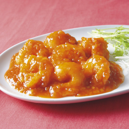 大きめサイズの海老を使用した、食べ応えのあるエビチリ。