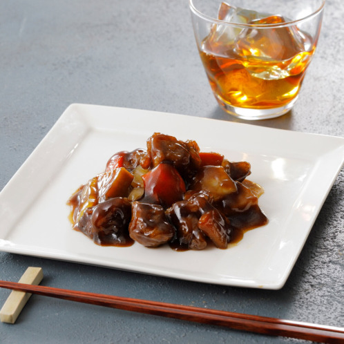 お店でも人気の黒酢酢豚をご家庭用にアレンジした(本品と製造場所やレシピは異なる)「野菜入りまろやか黒酢酢豚」です。