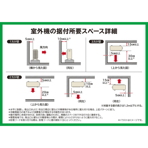 ・室外機はテレビ、無線機などのアンテナより3m以上間隔を取る。