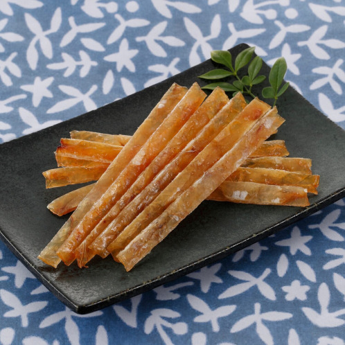 味付けしたかわはぎを、香ばしく焼き上げた「焼きかわはぎジャーキー」のご紹介です。