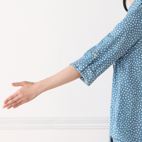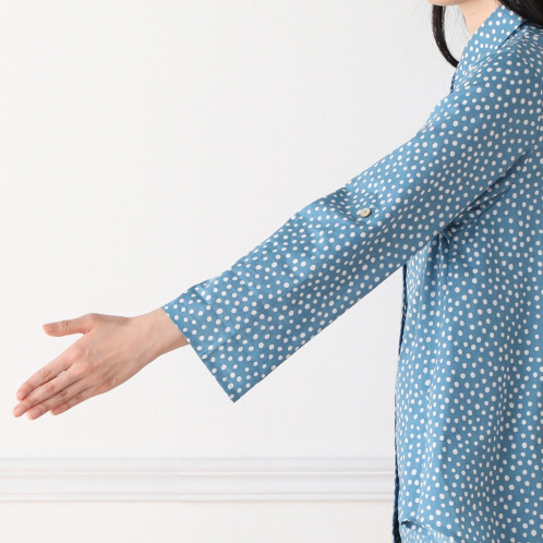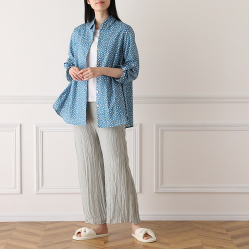 通気性に優れ見た目にも涼しげなので、暑い季節のお部屋着としてはもちろん、お出かけ用としても重宝する一枚です。