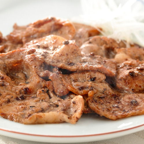 国産豚肉の旨みの強い部位(ロース)を使用し、食べ応えがありながらも調理しやすい厚みにしたものに、“ユーロン”こだわりの豆鼓(トウチ)を入れたこだわりの醤油ベースのタレを絡めた一品。