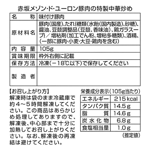 赤坂にある中国料理の名店“メゾン・ド・ユーロン”を代表する料理人の一人としても知られる、阿部淳一シェフ監修の「豚肉の特製中華炒め」のご紹介です。