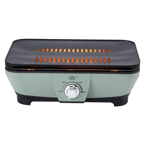 ・火力調節つまみ:弱火=420W、減煙=420W、750W、強火=750W