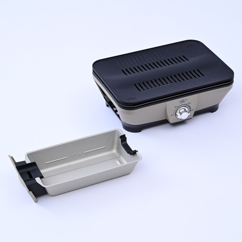 食材から出た脂が、水トレイに落ちるよう設計されているため、イヤな煙や脂のにおいが発生しにくい仕組みです。