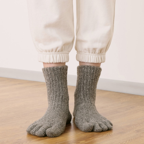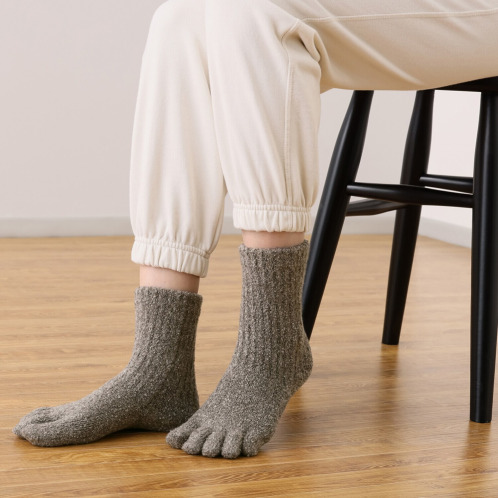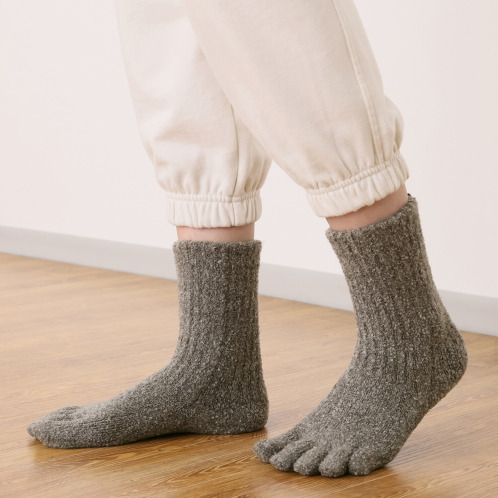 手ぶくろ職人のこだわり! 指先までふわふわ裏起毛の モコモコあったか 5本指ソックス 同色2足セット 杢クロ