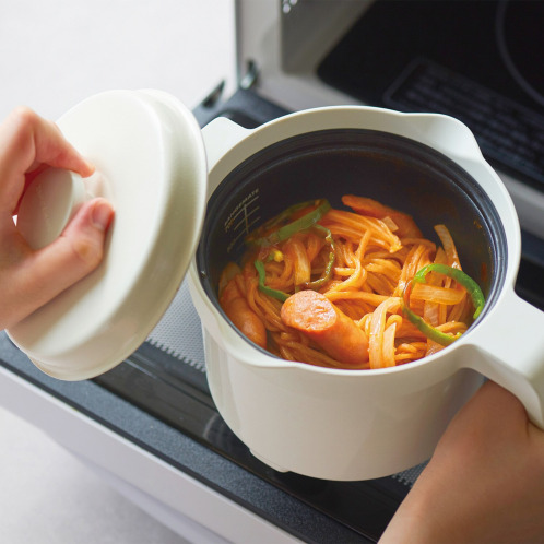 特許構造で 直火のような調理が 電子レンジで! 1台8役 煮る、炊く、冷蔵保存まで レンジメート マグポット ホワイト