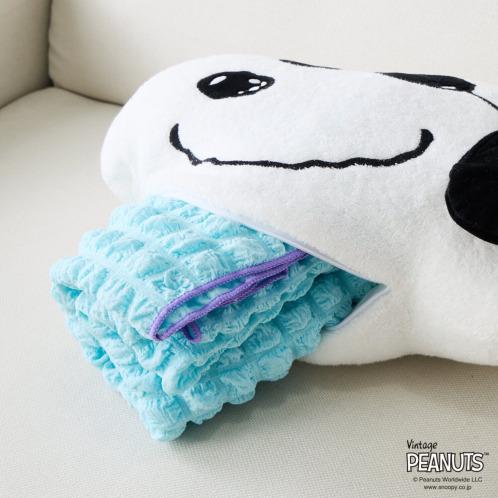専用のクッションケースに入れることでかわいいスヌーピークッションに!洗濯ネットを使用して洗濯機で洗えるため清潔を保ちやすそう。