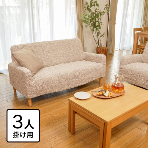 イタリア製 縦・横・ななめに伸びて ぴったりフィット シャーリングソファカバー <3人掛け> ライトベージュ