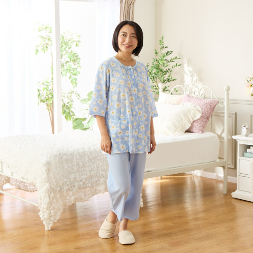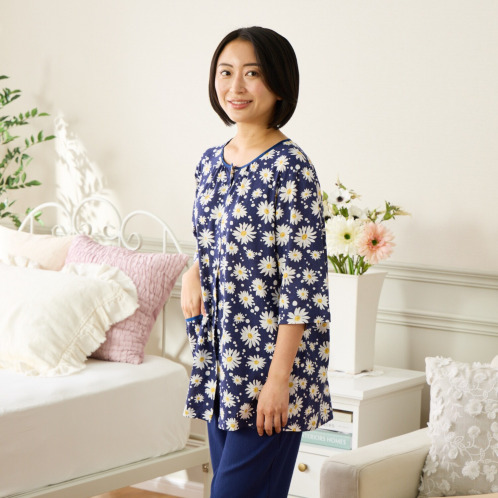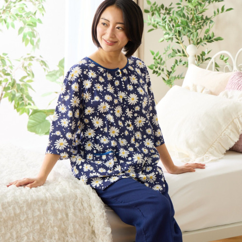 WIND 高島ちぢみ ストレッチ楊柳 マーガレット柄パジャマ