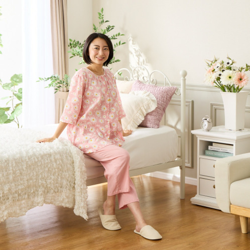 WIND 高島ちぢみ ストレッチ楊柳 マーガレット柄パジャマ ピンク LL