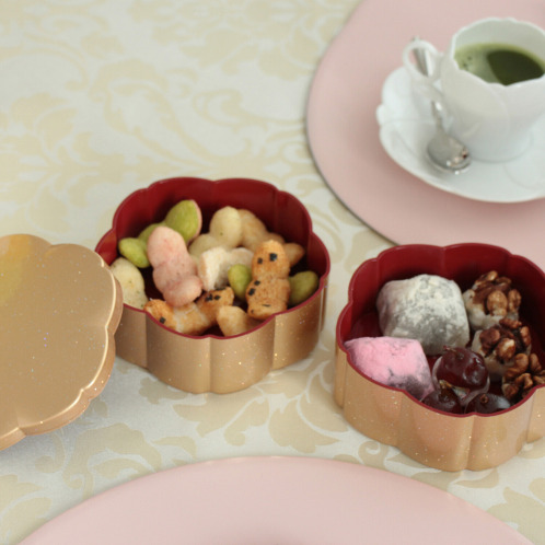 <ブルーミング中西>より、大粒のラメがきらめく、「ジュエルキラメキミニ花型二段重箱」のご紹介です。