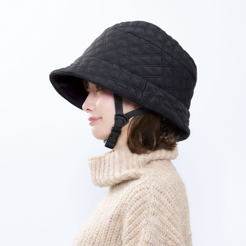 帽子を着せ替えられる オシャレな 自転車ヘルメット おしゃヘル <キルティングハット> ブラック