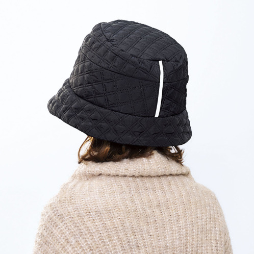 帽子のデザインはスマートなシルエットで高見えなキルティングハット。