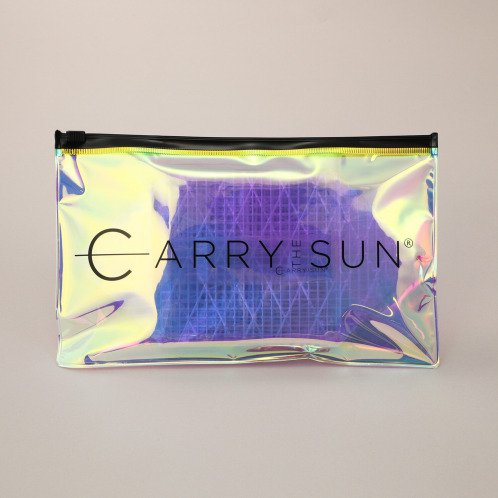 コンパクトに折りたたむことができ、軽量なので持ち運びに便利!光の当たり方でキラキラと色が変わるオーロラポーチ付き。