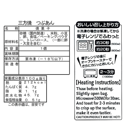 三方焼とは、ふっくらもっちりとした食感の生地の中にぎっしり詰まった粒あんがおいしい一品。