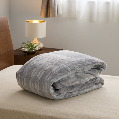 側地は両面起毛のマイクロファイバーの上質な毛布地で、身体側の毛布地の基布には吸湿発熱素材を使用しました。