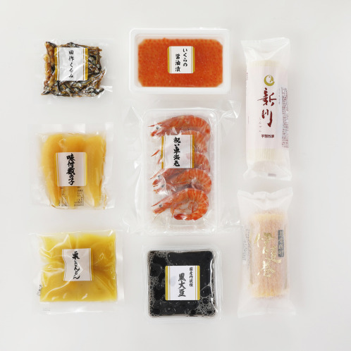 日本全国から、それぞれの商品において特においしいものを作っているメーカーを厳選し、おせちに欠かせない基本の品々を1種ずつ小分けにして詰め合わせたセット。