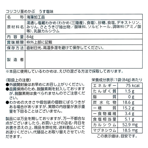 ■コンタミネーション注意喚起表示:本品に使用しているわかめは、えびの混ざる方法で採取しております。